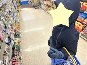 お菓子を選んでカゴに入れていました!!